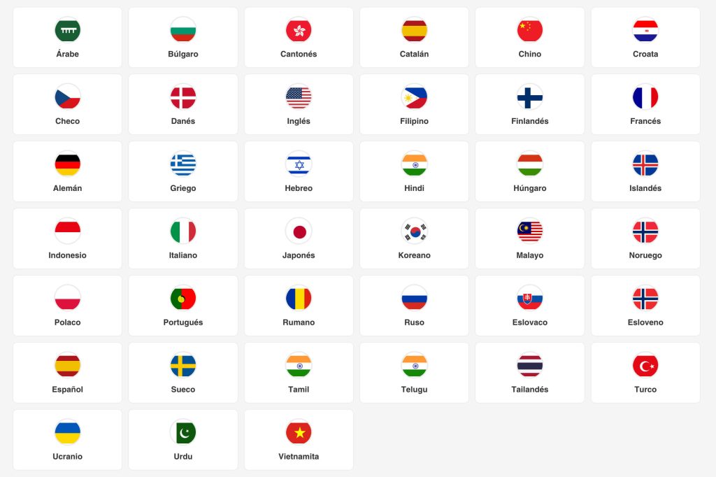 Soporte para 40 idiomas y 93 acentos